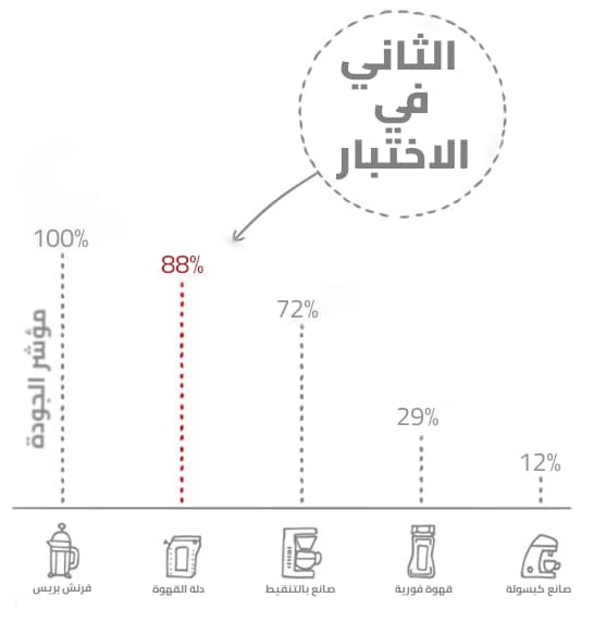 لقد اختبرنا دالة صانعة القهوة مقابل مفاهيم تحضير القهوة الأخرى في اختبار معملي متطور. تفوقت دالة صانعة القهوة على مفاهيم القهوة الأخرى وجاءت في المرتبة الثانية بعد الفرنش بريس فقط في استخراج الطعم الغني.